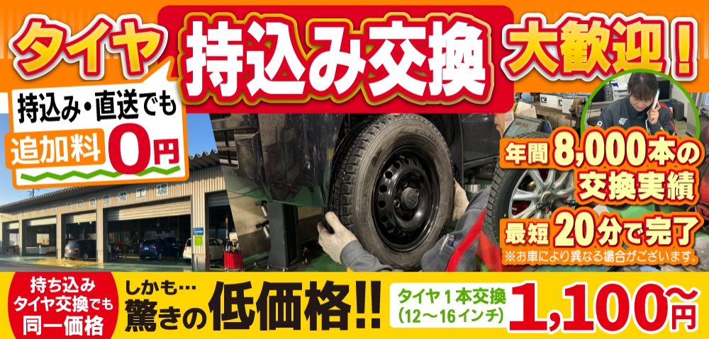 多くの岩手県盛岡市・滝沢市・岩手郡(雫石町・葛巻町・岩手町)・仙北市・八幡平市エリアのお客様から持ち込み交換のご要望を頂いたため、タイヤ持込・交換も受付けております。最近はネットで購入した格安タイヤやスタッドレスタイヤへの交換ニーズもある為、当店ではより便利なショップを目指し、タイヤ交換のみのお客様も大歓迎しております。