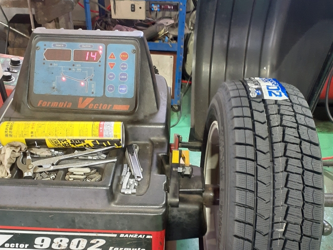 タイヤに錘をつけてアンバランスを矯正する作業をバランス調整といいます。